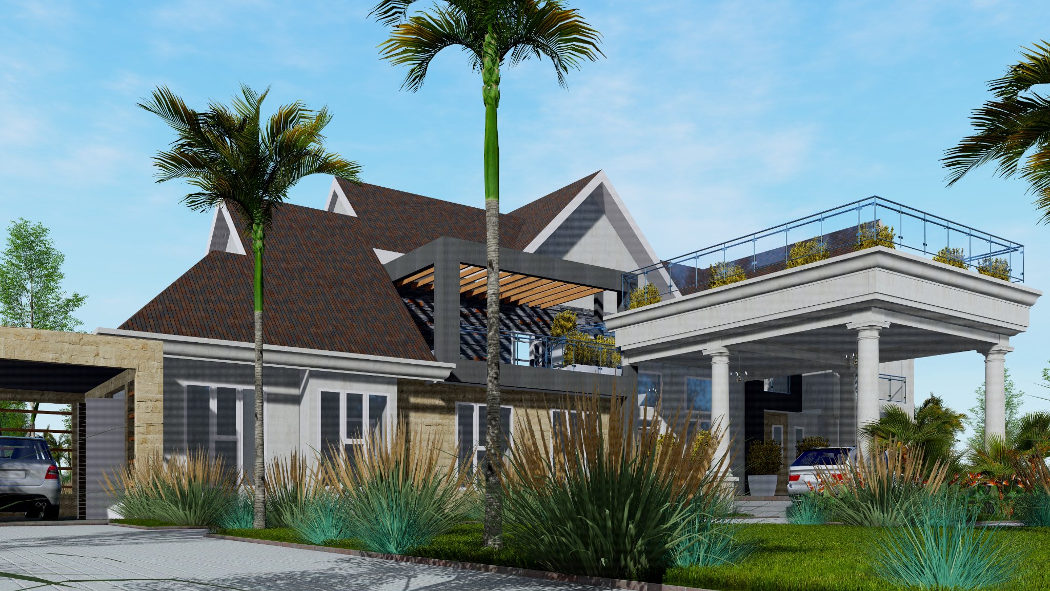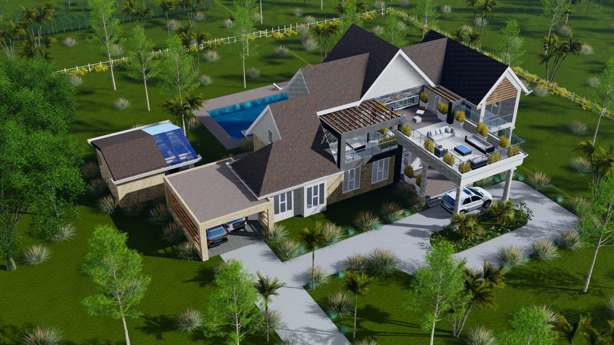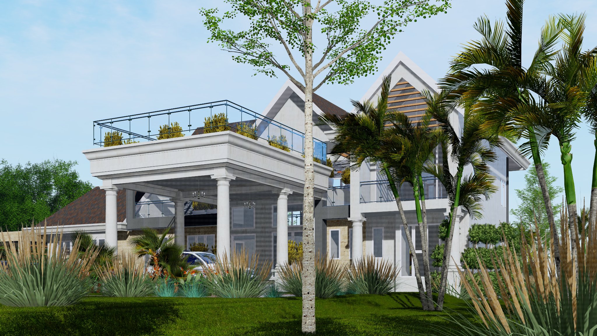This homes boasts a double volume living and a roof top terrace with a panoramic view of the scenic hilly landscape.