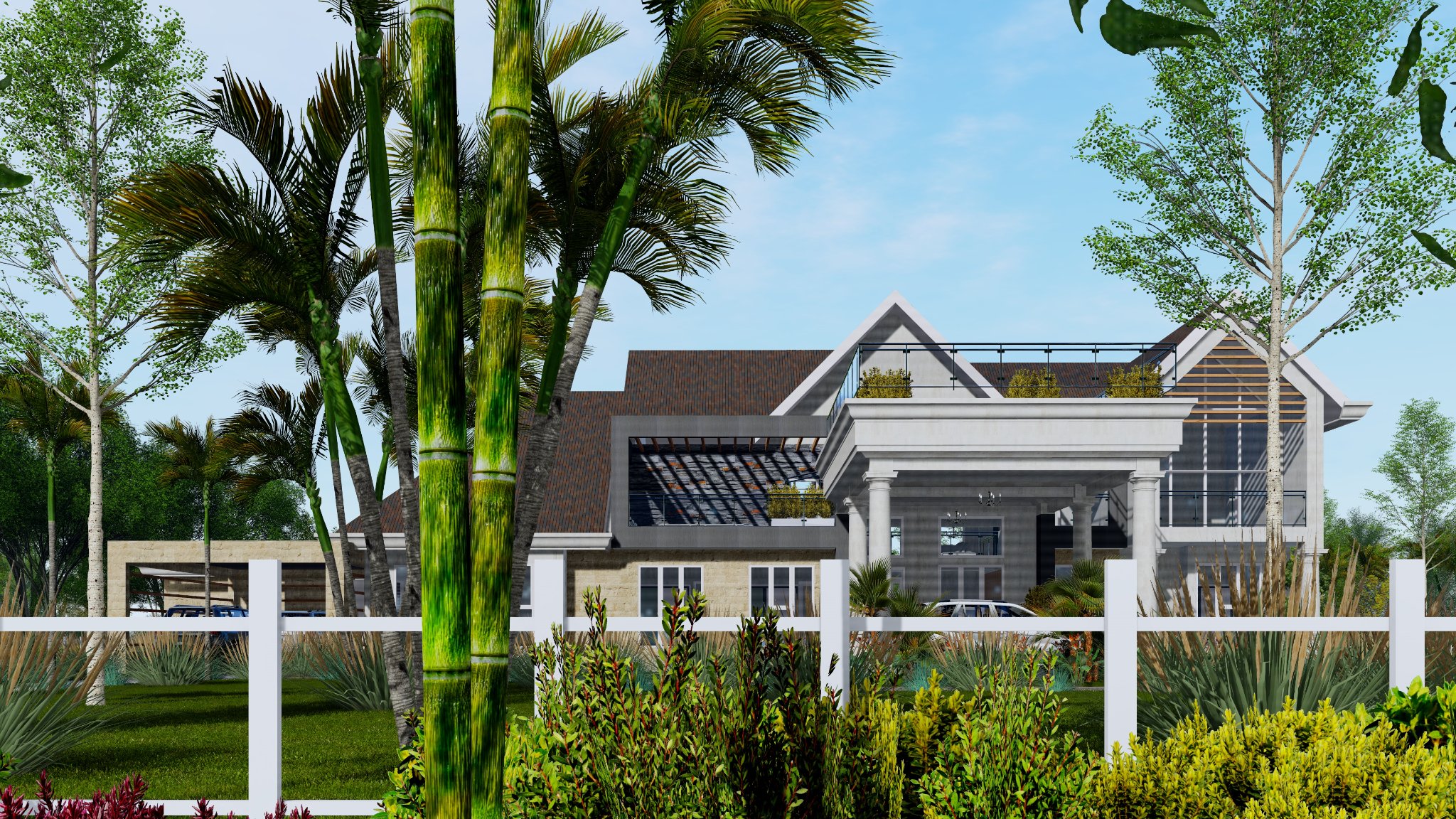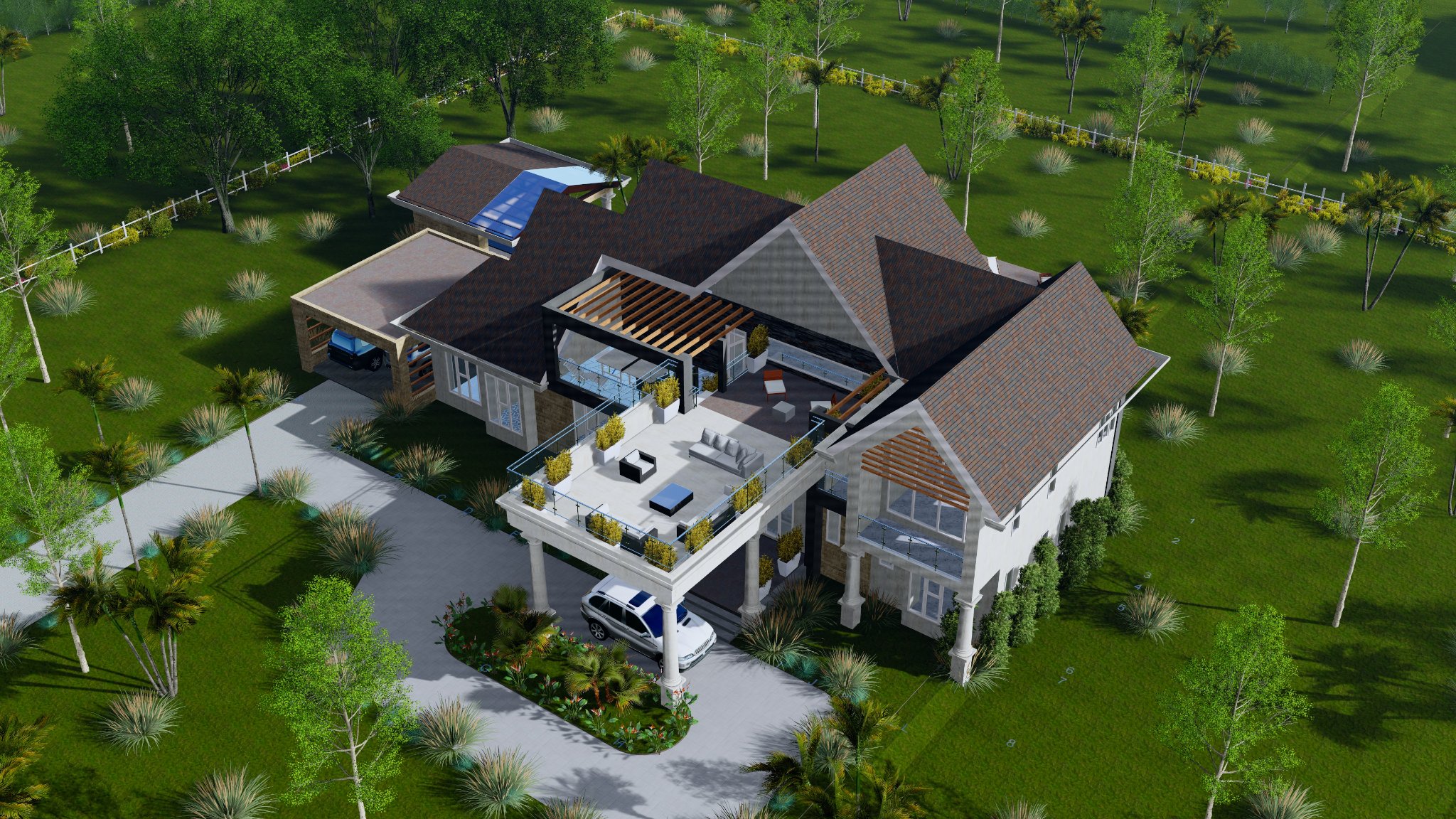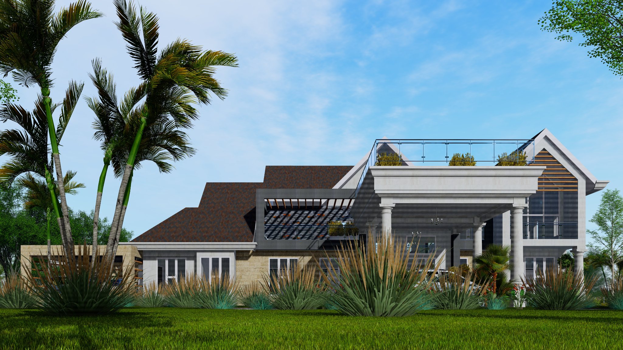 This homes boasts a double volume living and a roof top terrace with a panoramic view of the scenic hilly landscape.
