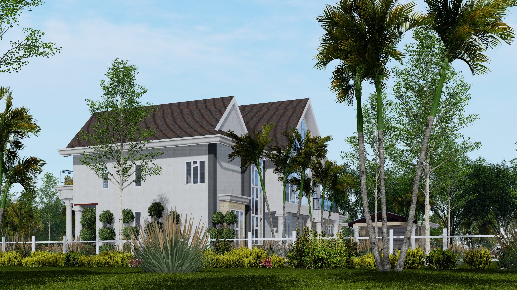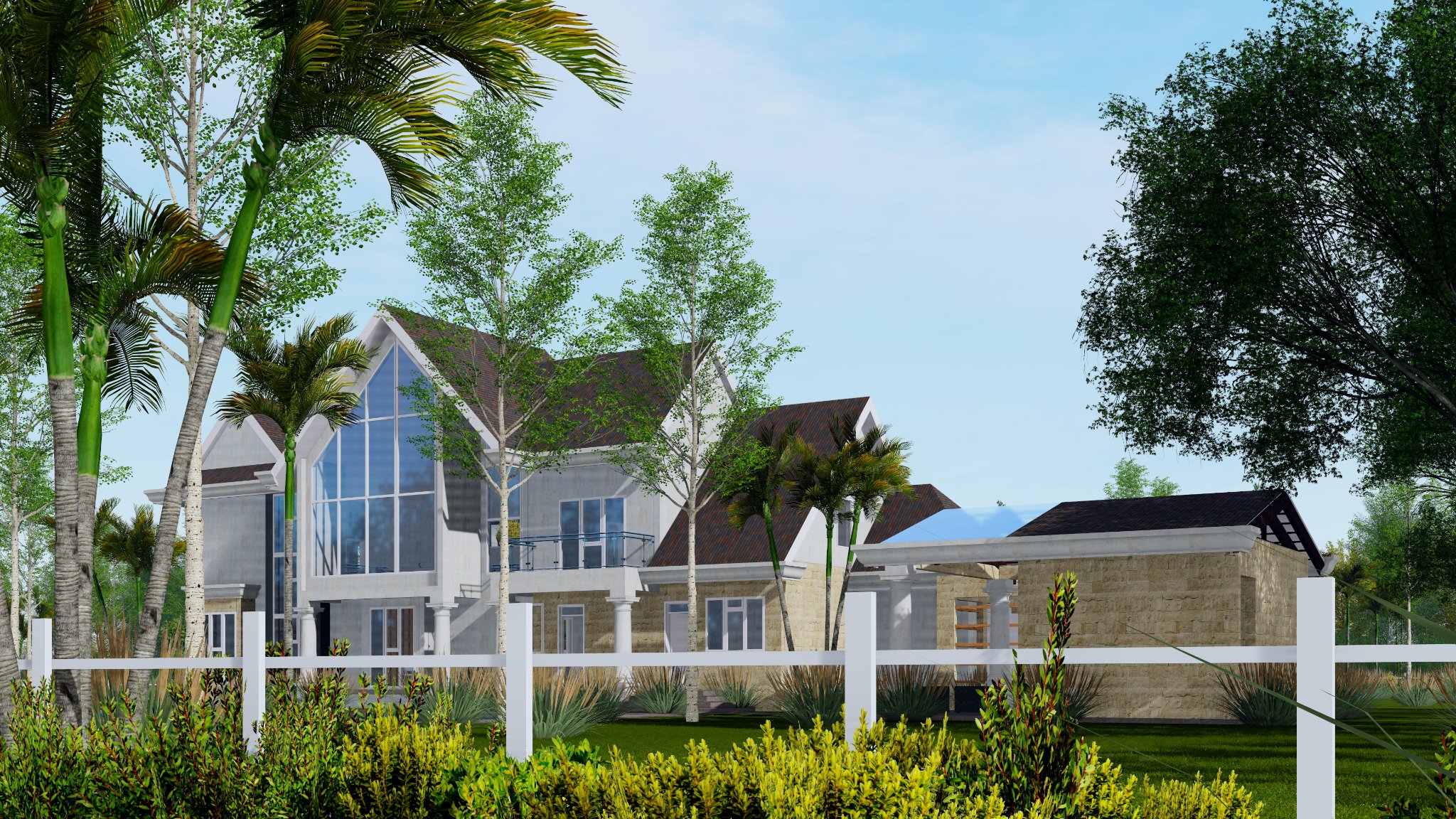 Located on two acres of land, the house features ample flexible space and gable shaped roof.