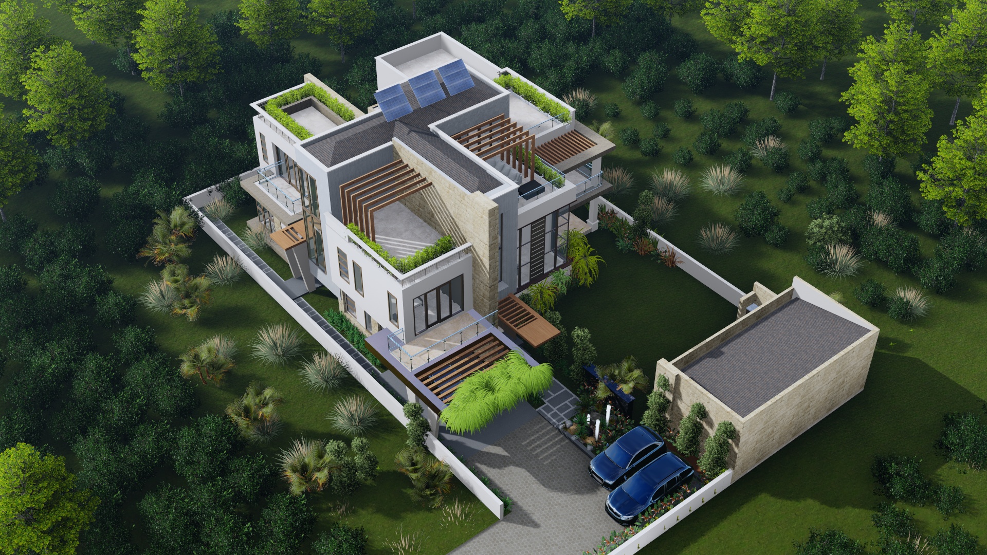 Ascend to the rooftop lounge and indulge in panoramic views, ideal for entertaining or quiet evenings under the stars. Enhance your culinary experience with the outdoor kitchen, then unwind in the cozy gazebo surrounded by lush greenery.